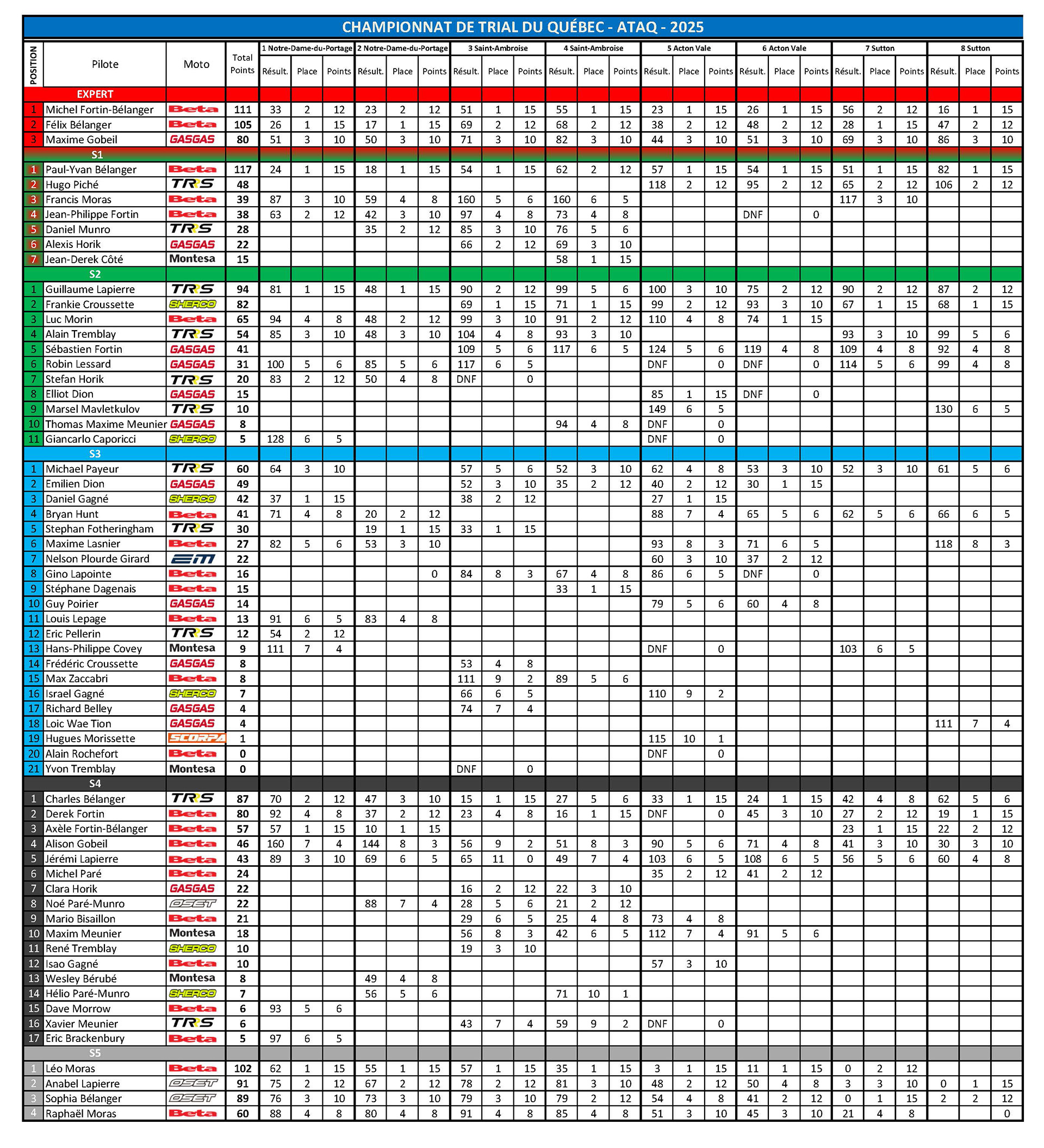 Retrouver dans cette section le classement de la saison en cours ainsi que ceux des saisons antérieures. Cliquer sur une grille pour l’agrandir.